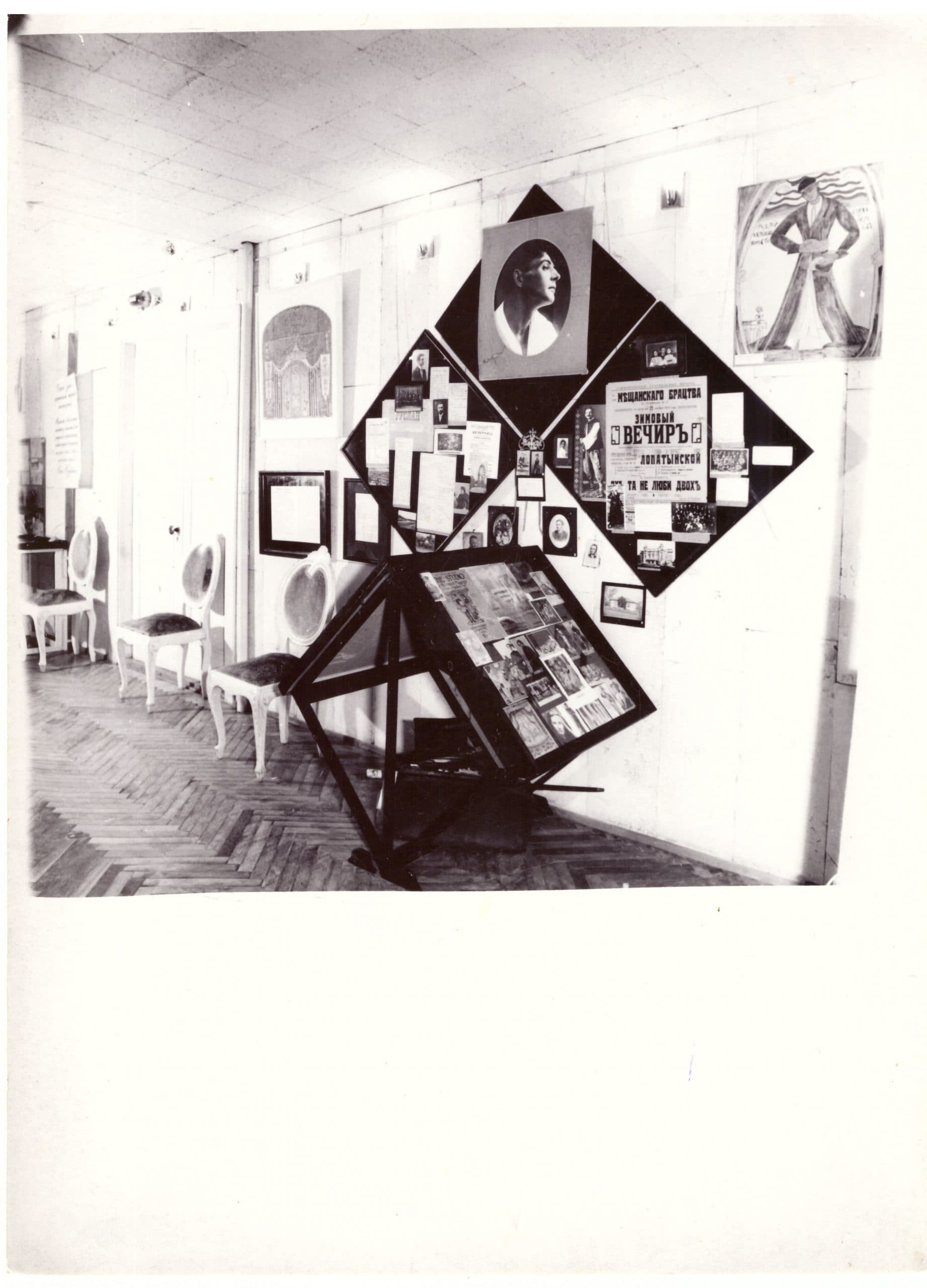 Оформлення виставки було вирішено в конструктивістському стилі, з використанням сцени залу, як образної структури з театралізованим освітленням. Автори запропонували розглянути явище театру Курбаса – як воно народилося, його етапи розвитку та сучасне сприйняття.