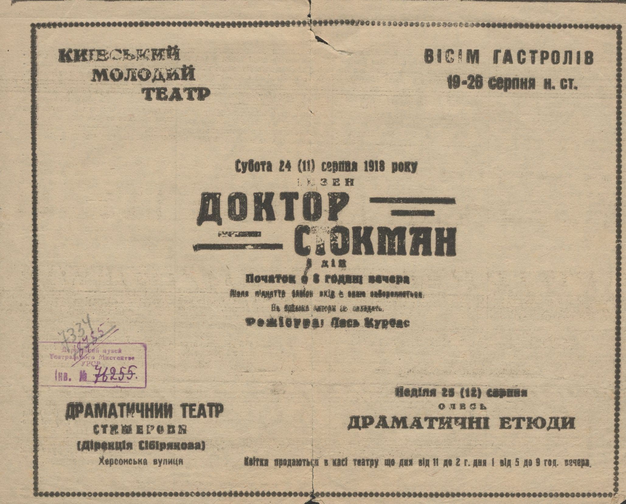 Улітку 1918 року молодотеатрівці гастролювали в Одесі, де не лише виступали на сцені, а й готували на березі моря прем’єру софоклівського «Едіпа-царя» (пер. І. Франка). Після повернення до Києва театр відкрив свій другий сезон у приміщенні на вул. Прорізній (нині Київський молодий театр) першою україномовною постановкою античної драми. «У виставі немає Софокла, — писав один зі свідків, — але тут є щось надзвичайно революційне, є сміливість, переходяча в протест, є дуже цікавий спробунок цілком малярського підходу до старої трагедії. Лінії, фарби, рухи — ось такий зміст вложив у “Едіпа” талановитий шукач». Серед інших прем’єр цього сезону — першовтілення драми «У пущі» Л. Українки, «Горе брехунові» за Ф. Ґрільпарцером, «Затоплений дзвін» Г. Гауптмана та ін.