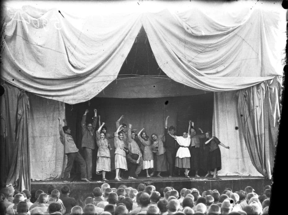 Для першого етапу, коли були підготовлені пантомімічні перформативні вистави «Жовтень» (7.11.1922) і «Рур» (24.02.1923), характерне переважання студійних занять і тренажів.